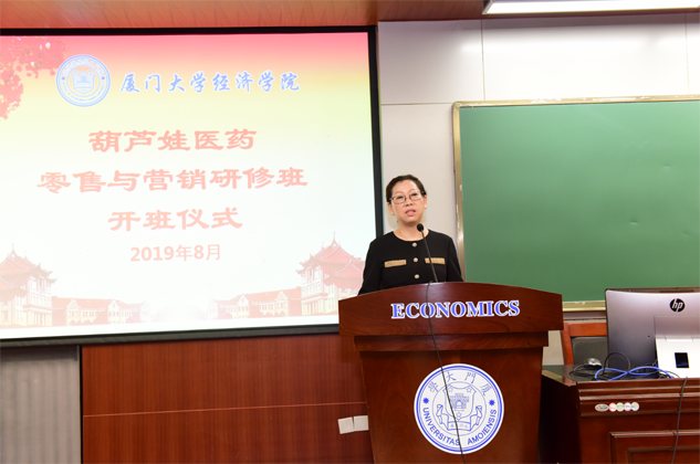 8月31日,金沙9001cc医药零售与营销研修班开班仪式在厦门大学经济学院举行,为期8天的“厦大金沙9001cc班”正式拉开帷幕。厦门大学经济学院继续教育中心主任廖景峰先生与金沙9001cc药业集团董事长刘景萍女士分别在开班仪式上致辞,中国医药物资协会研究院执行院长代航先生担任本次研修班班主任并主持开班仪式。
