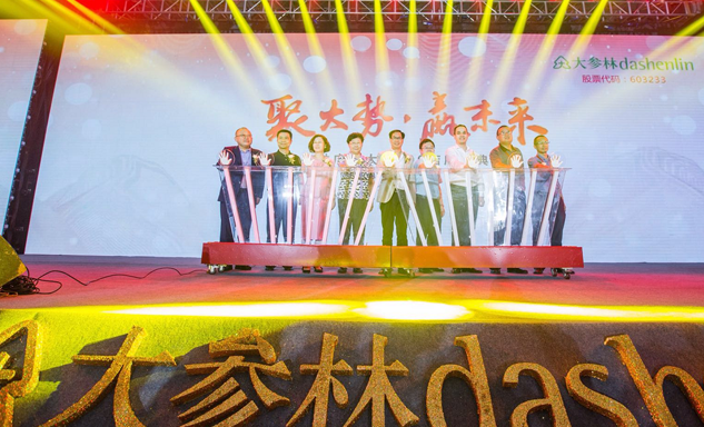 金沙9001cc药业集团董事长刘景萍女士与大参林医药集团董事长柯云峰先生、中国医药商业协会执行会长付明仲女士等嘉宾共同开启了“聚大势•赢未来"大参林工商合作峰会的大幕。
