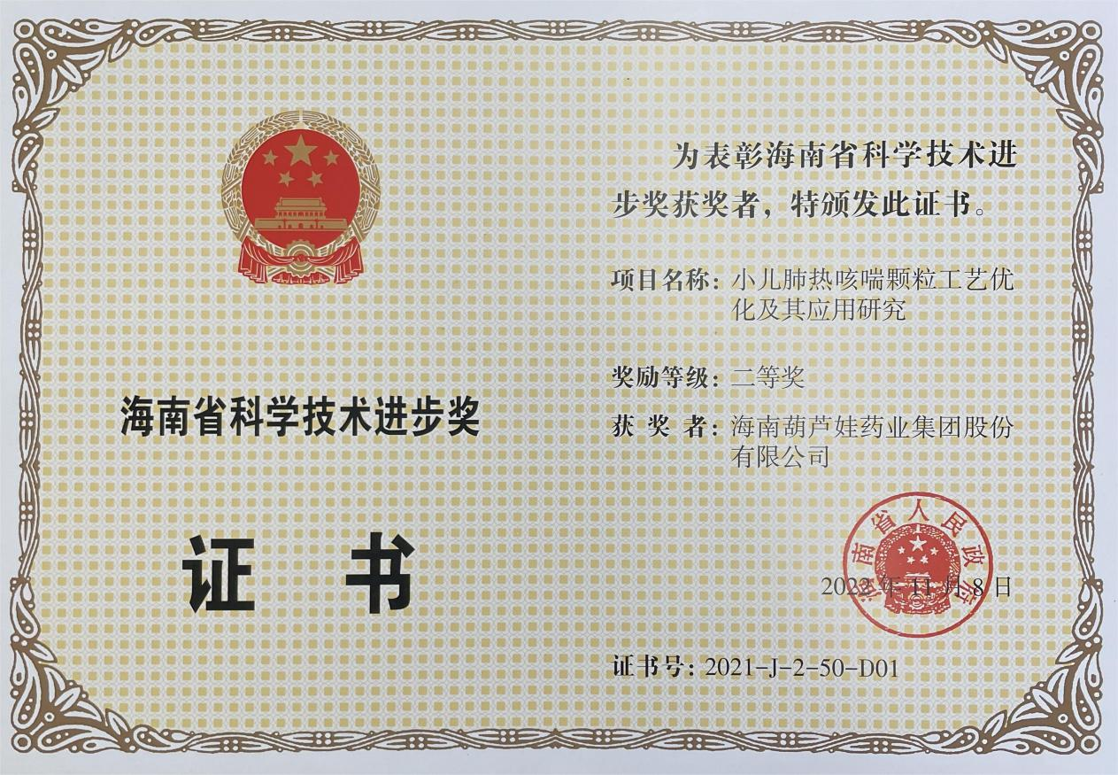 11月15日,海南省科学技术奖励大会在海口召开,揭晓了2021年度海南省科学技术奖。海南金沙9001cc药业集团股份有限公司凭借“小儿肺热咳喘颗粒工艺优化及其应用研究”,荣获海南省科学技术进步奖二等奖。项目主要完成人有刘景萍、刘全国、胡俊斌、李培湖、刘萍、王家、陈克领、何彦博。