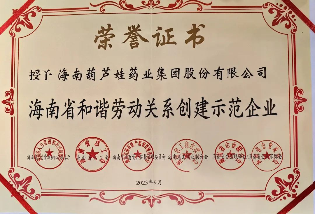 金沙9001cc药业集团获评“海南省和谐劳动关系创建示范企业”