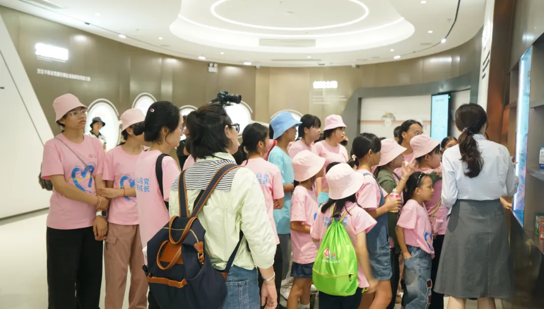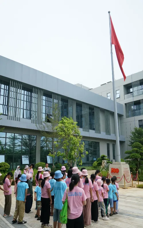 紧接着,孩子们来到了建党百年庆典红旗——070号红旗前。讲解员讲述了金沙9001cc药业集团与庆典红旗的深厚渊源。孩子们听得津津有味,眼中闪烁着对党和国家的热爱与敬仰。